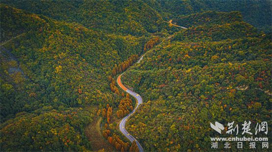 新京报(湖北日报)讯(通讯员:刘峰、韩淼、金林波)花儿色彩斑斓,美化了山林。深秋时节,湖北省十堰市茅箭区南部山区树木茂盛,色彩斑斓,别具一格。生机勃勃的绿色、鲜艳的黄色、热烈的红色、深邃的棕色……各种颜色交织、混合,铺在眼前的山林如油画般绚丽美丽,却又隐隐有深度。