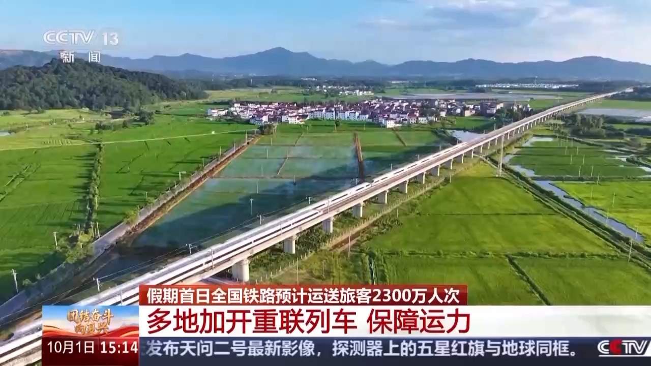 CCTV CEN XI记者:今年我们在国庆节和全明星节见面。有几种旅行需求,包括游客和亲戚参观。预计国家铁路将是假期期间最繁荣的一天,许多乘客可能会达到2300万。计划添加2,106列客车,以便每个人都更柔软,更方便。